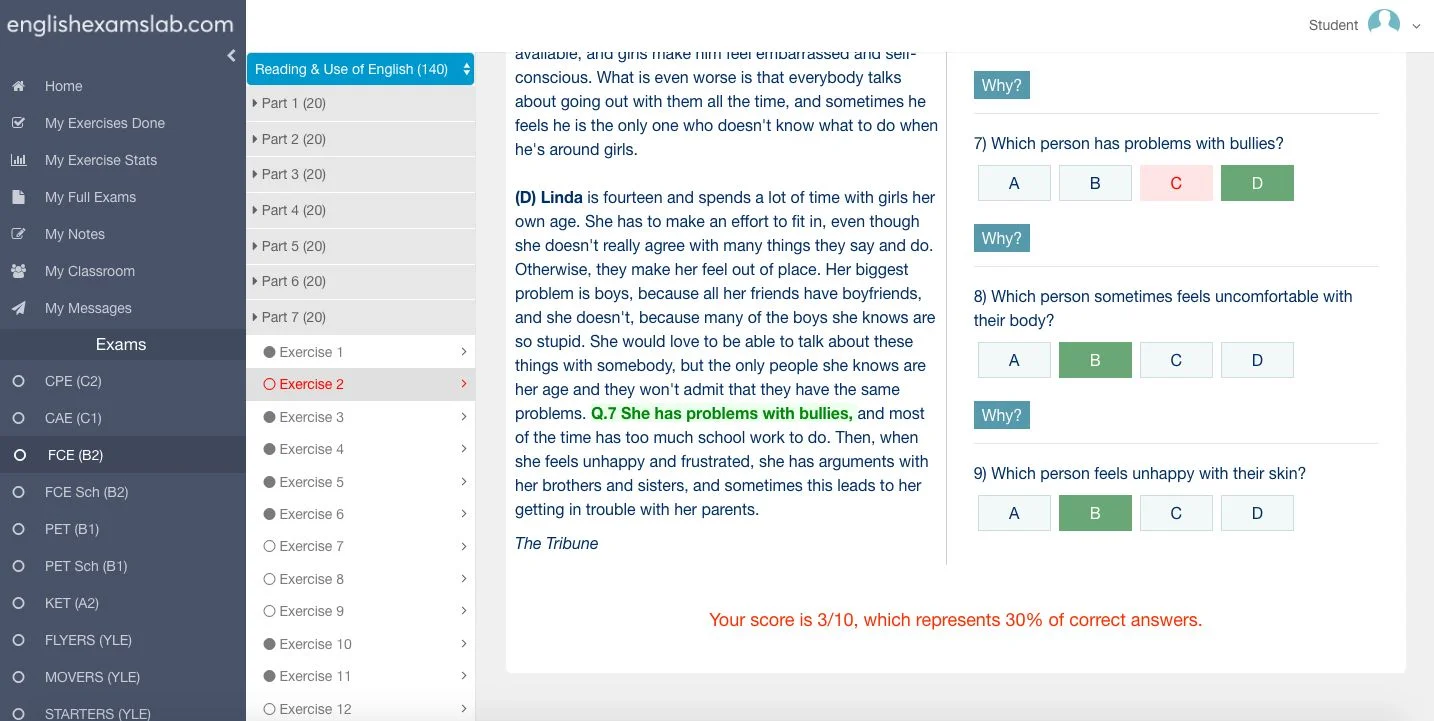 Además hay cientos de ejercicios de examen para practicar las siguientes destrezas.