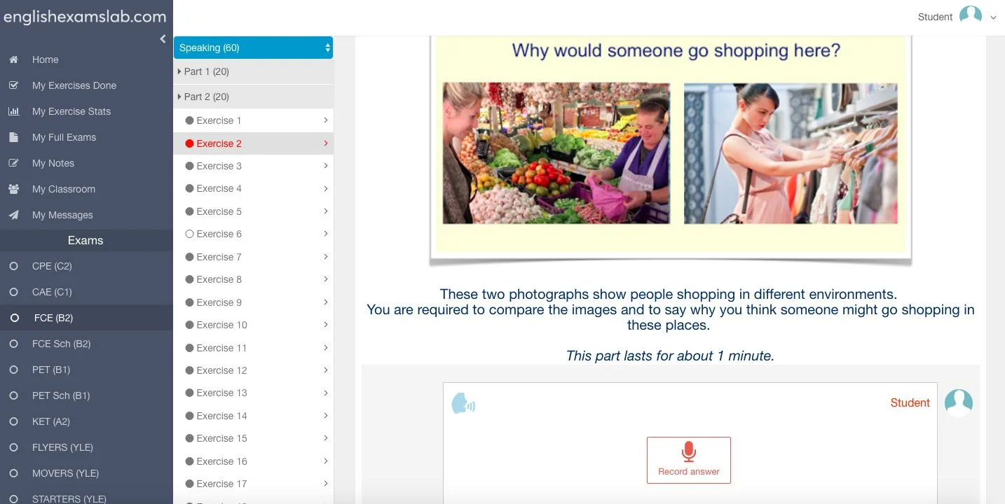 El alumno graba en la aplicación sus respuestas y las envía para que sean corregidos por un profesor que le corregirá los errores y le proporcionará ayuda y consejos para mejorar.