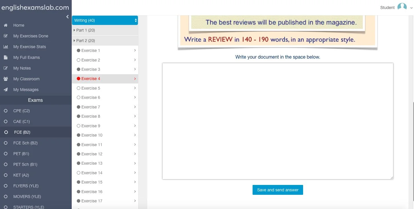 El alumno redacta los ejercicios y los envía, para que sean corregidos por un profesor que le corregirá los errores y le proporcionará ayuda y consejos para mejorar.